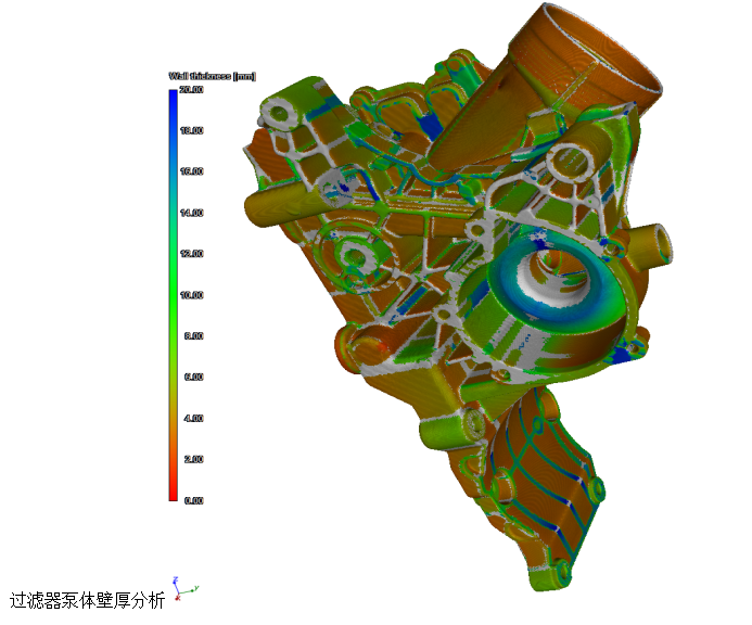 樣品描述:此鋁合金泵體應(yīng)用在汽車發(fā)動機過濾裝置,因內(nèi)部壓力要求此產(chǎn)品不容許有大于0.5mm以上的空隙,因為裝配要求對產(chǎn)品的每個面的壁厚要求非常嚴格,因為產(chǎn)品結(jié)構(gòu)的負責(zé)性,傳統(tǒng)的三坐標測量無法滿足壁厚測量,但是工業(yè)ct很好的解決了這類問題,對后期產(chǎn)品批量生產(chǎn)提供非常的技術(shù)支持。