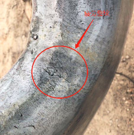 現(xiàn)場(chǎng)檢測(cè)出的疲勞裂紋圖片如下